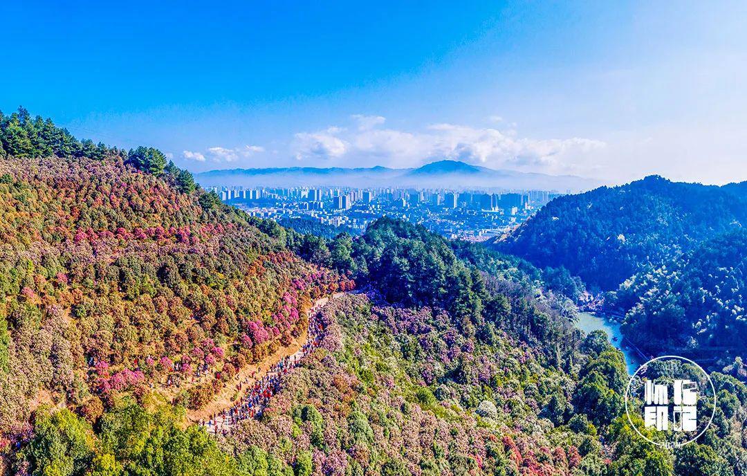 背景为益阳奥林匹克公园冠军林和山水